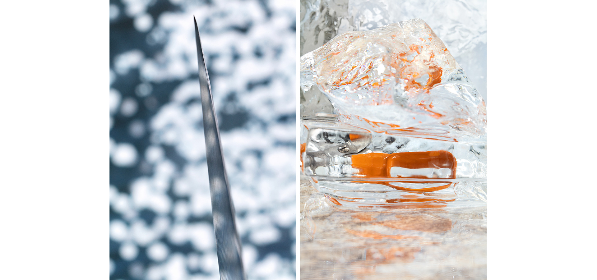 In our approach, we placed the Fiskars products in the center, clearly separate but still intertwined with their environment and the natural materials they're designed to be used on. Various reflective surfaces were employed to illustrate transparency and the desire to see and understand.